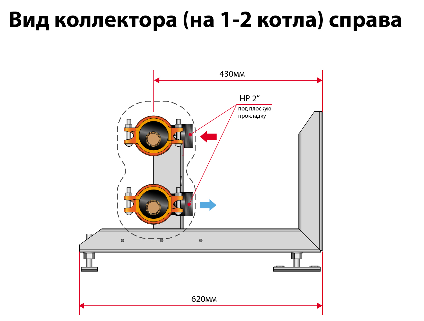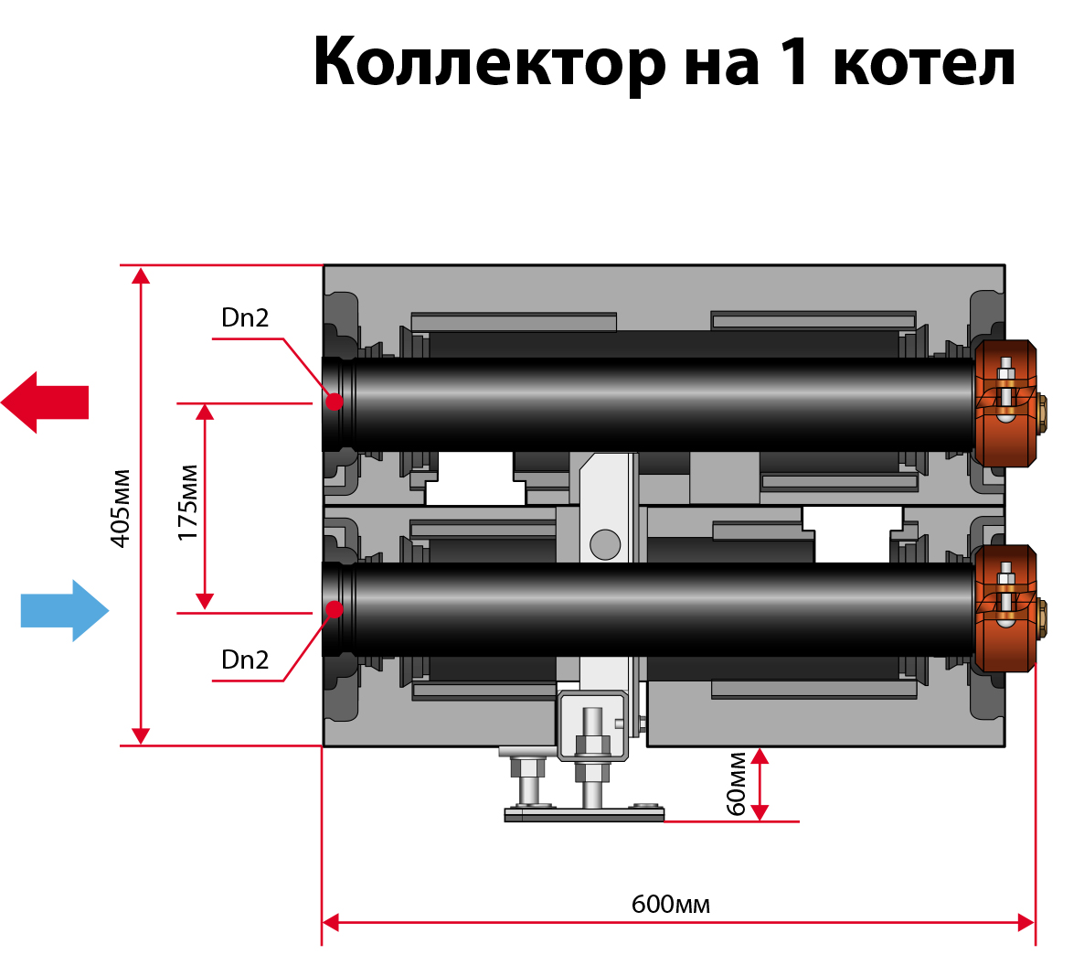 | Коллектор каскадной системы на 2 котла Dn 100 | 30 | 100 | 175 |