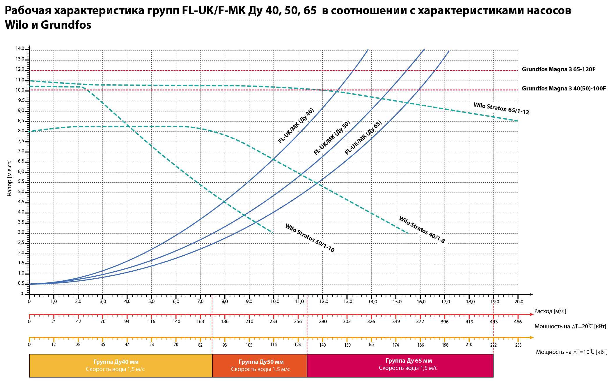 Типоразмеры групп DN40, DN50, DN65.